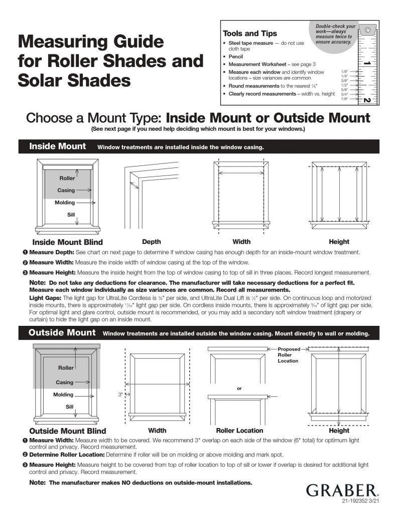 Roller Shades Measurements